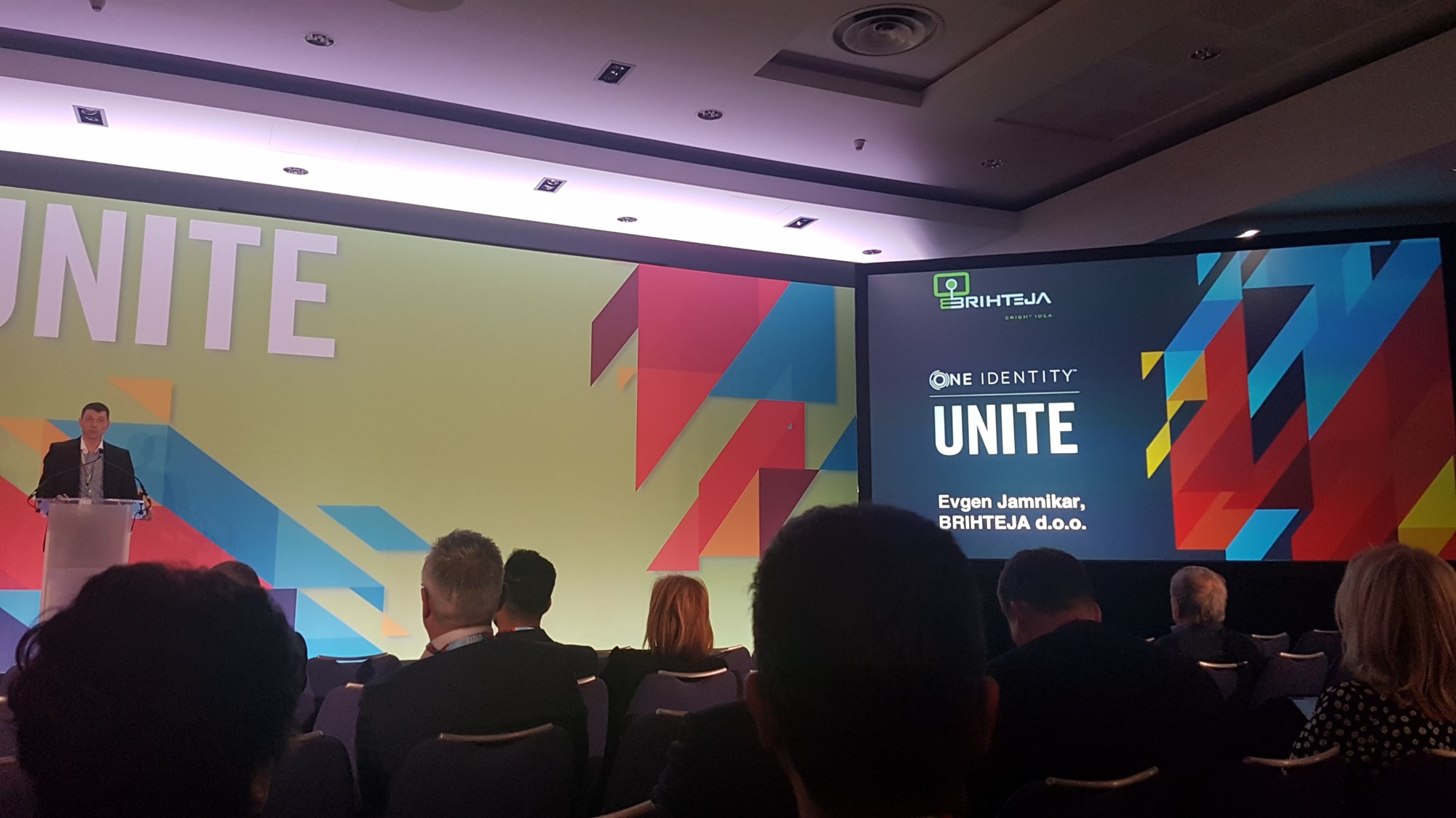 Na konferenci Unite smo z velikim navdušenjem prejeli nagrado za One Identity Partner of the Year znotraj EMEA regije za celotno področje Centralne in Vzhodne Evrope. Na takšno visoko priznanje nismo bili pripravljeni, kljub dejstvu da smo se zavedali, da naše delo opravljamo profesionalno in z visokimi etičnimi standardi. V Brihteji smo na priznanje še posebej ponosni, obenem pa se zavedamo, da priznanje pomeni obvezo za nadaljnjo trdo in kakovostno delo na projektih s področja upravljanja uporabniških pravic.